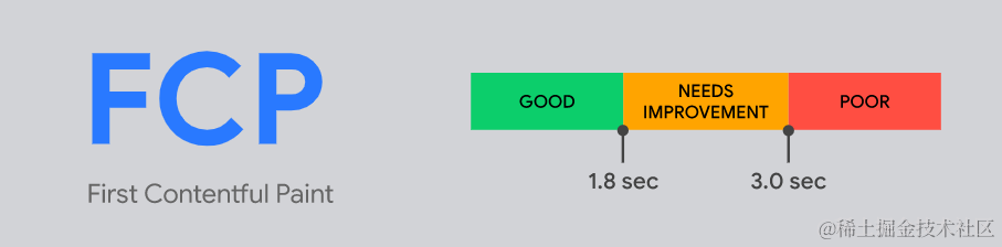 按照Chrome官方的推荐标准,FCP指标3个等级的评分分别为: