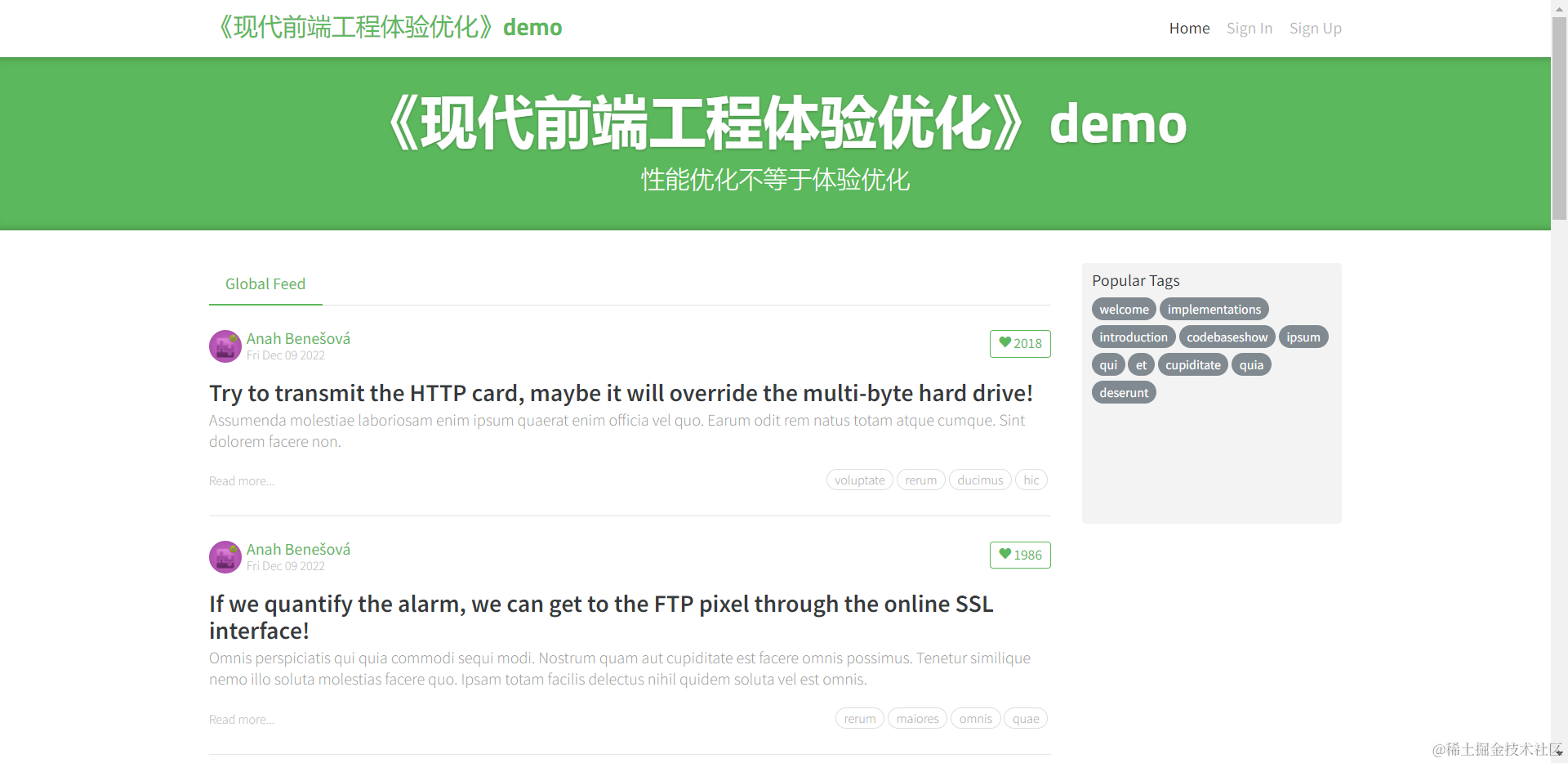 我们仍然以这本书配套的前端优化示例项目 fe-optimization-demo 为例,演示实施懒加载优化的核心流程。