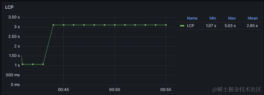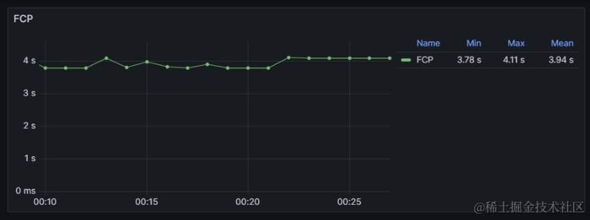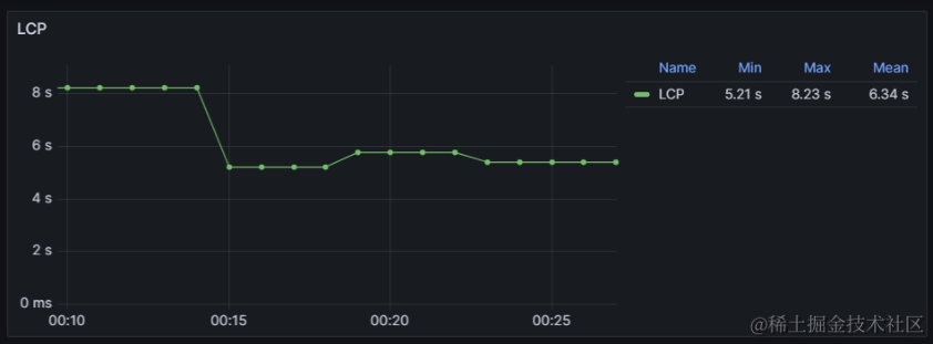 但是部署到生产环境后,SSR优化前后,FCP、LCP指标的差异将非常显著,为了便于准确评估对比优化前后的状态,我们选择使用指标的值,作为统计指标。