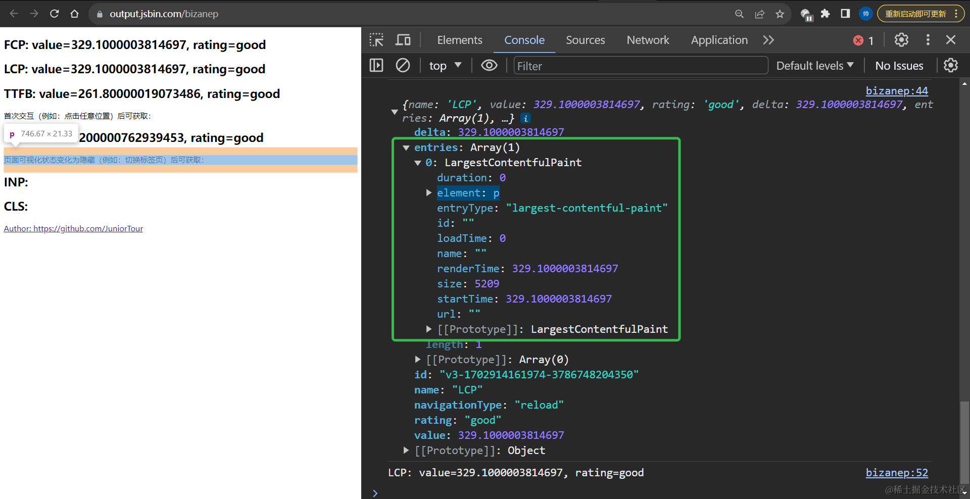注:LCP指标的目标元素可以通过以下方式获取: