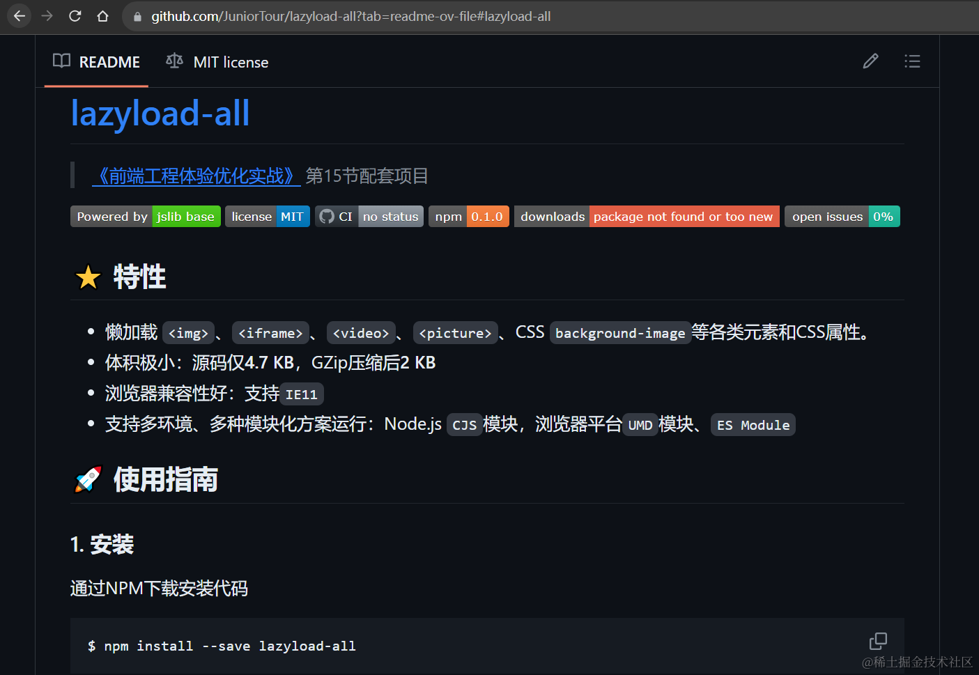 通用资源懒加载库 LazyloadAll GitHub 仓库链接:https://github.com/JuniorTour/lazyload-all?tab=readme-ov-file#lazyload-all