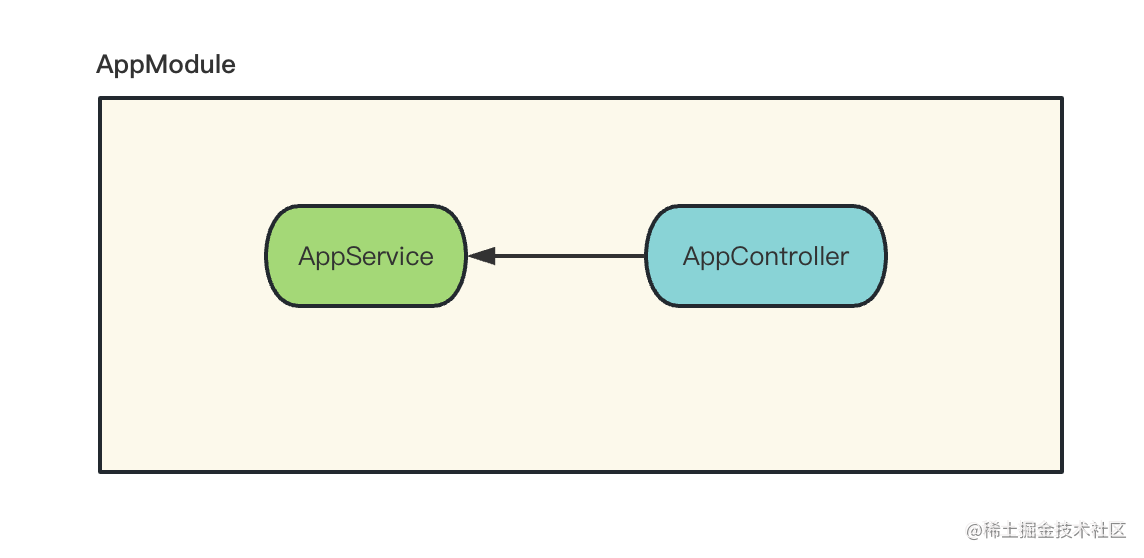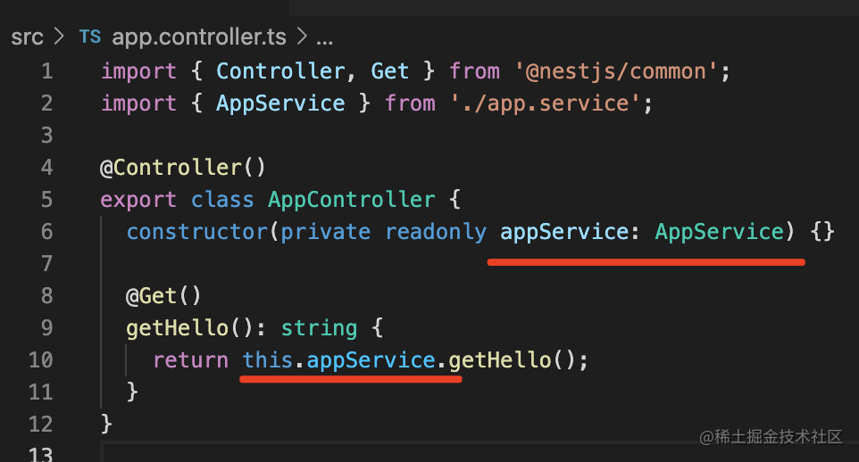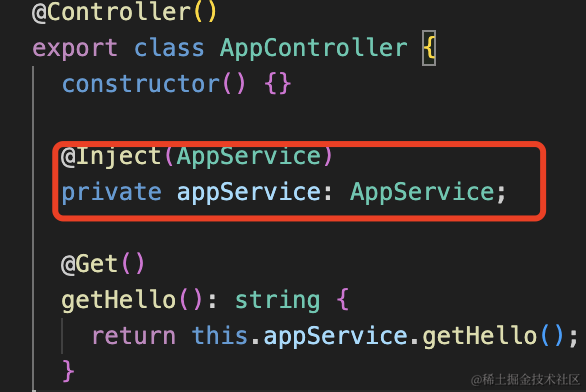 所以 AppController 只是声明了对 AppService 的依赖,就可以调用它的方法了:
