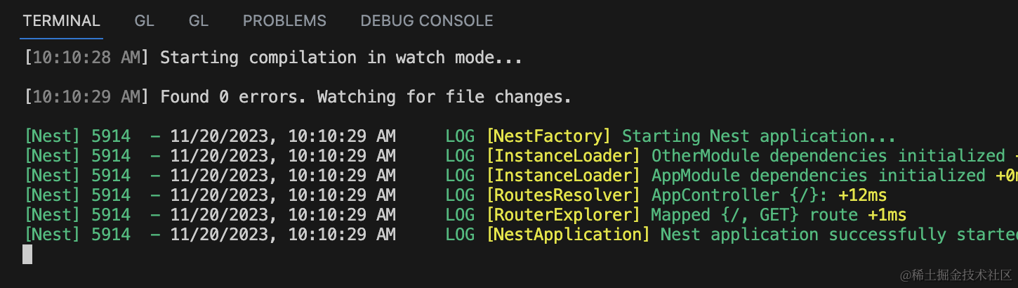 浏览器访问 http://localhost:3000 就可以看到 nest 服务返回的 hello world: