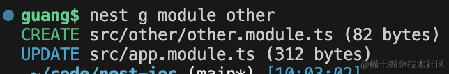 用 nest cli 的 generate 命令生成一个模块。