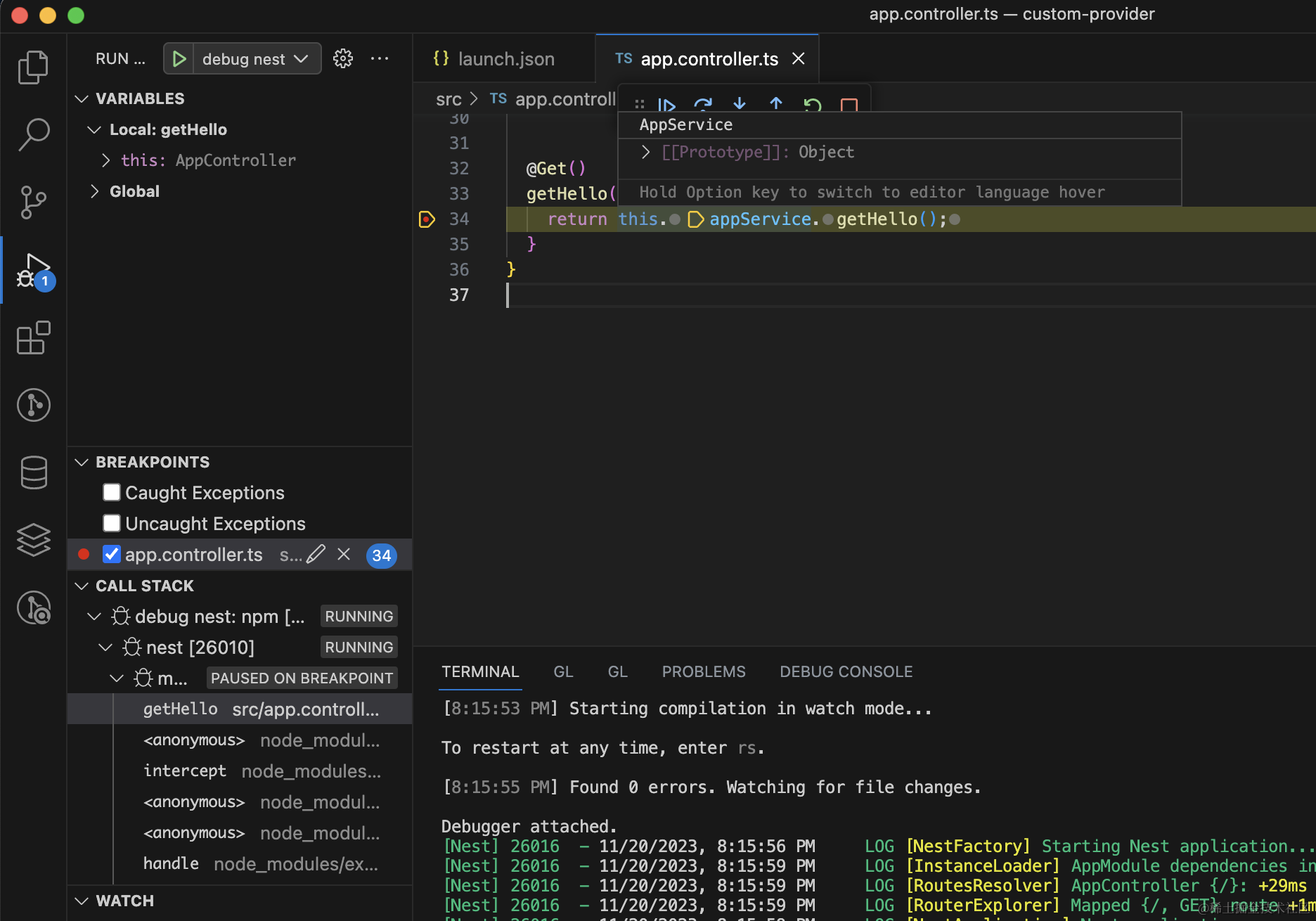 @Inject('app_service') private readonly appService: AppService我们调试下: