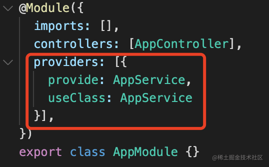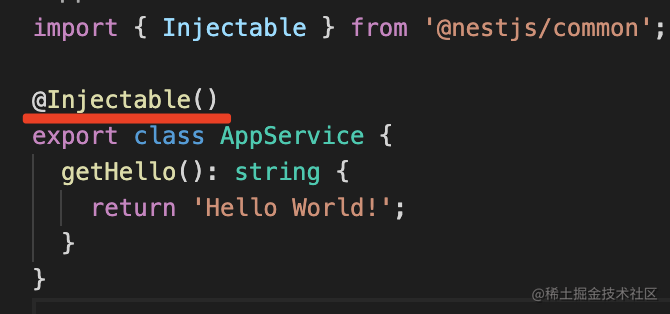 nest new custom-provider可以看到 AppService 是被 @Injectable 修饰的 class: