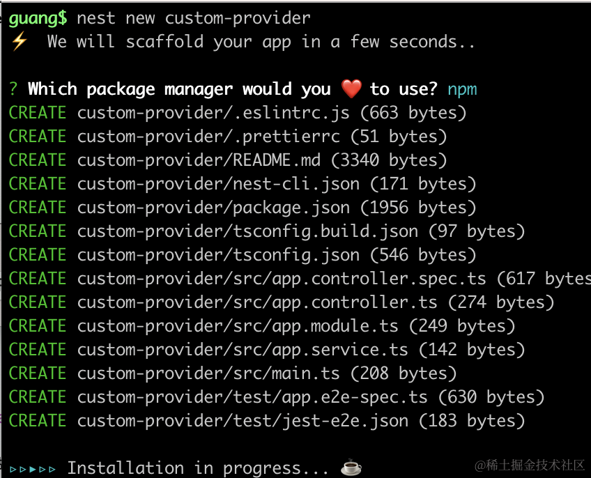 我们创建个 nest 项目: