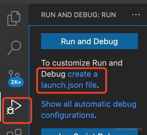 点击调试面板的 create launch.json file,创建调试配置文件: