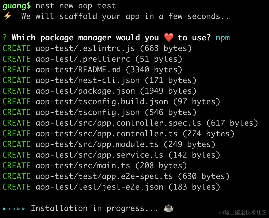 新建个 nest 项目,我们挨个试一下: