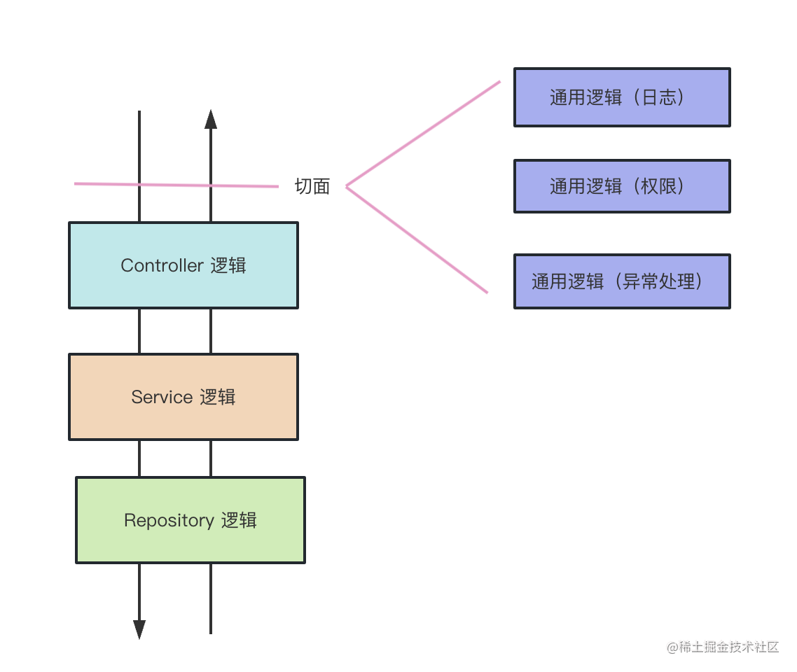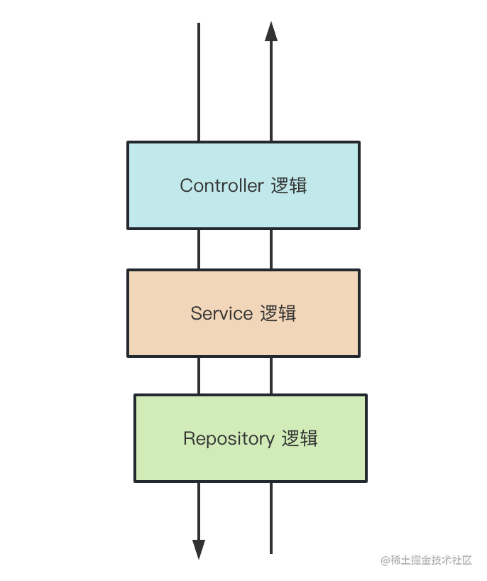 一个请求过来,可能会经过 Controller(控制器)、Service(服务)、Repository(数据库访问) 的逻辑: