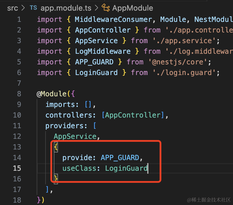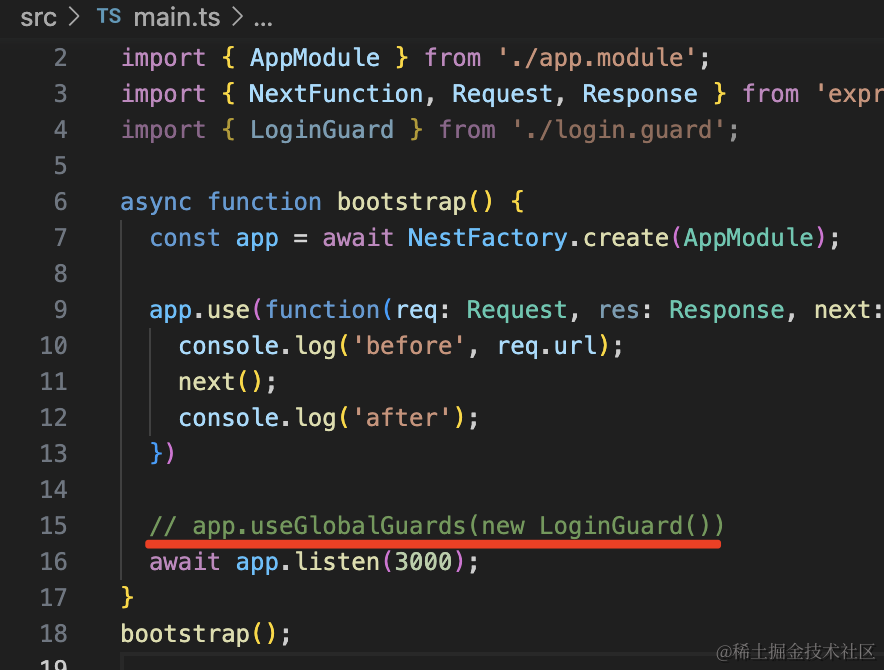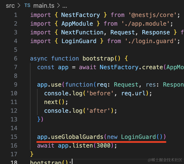 而且,就像 Middleware 支持全局级别和路由级别一样,Guard 也可以全局启用: