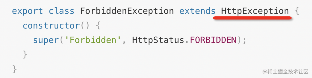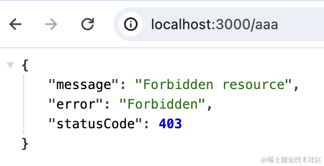 抛出的 ForbiddenException 会被 ExceptionFilter 处理,返回 403 状态码。