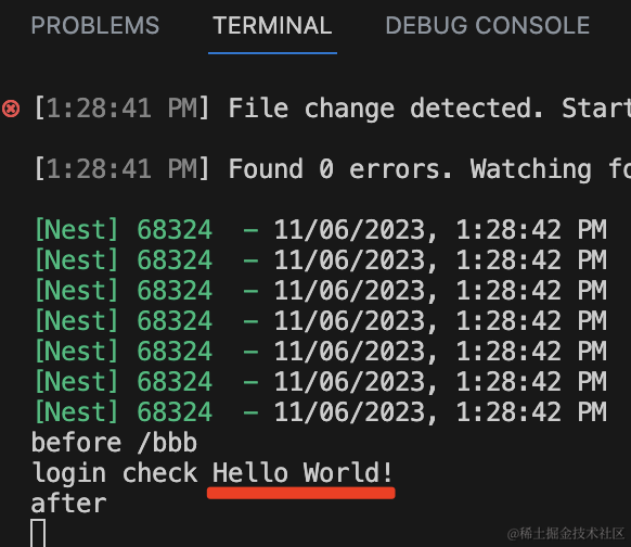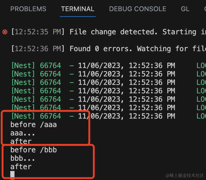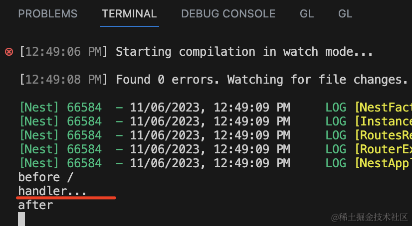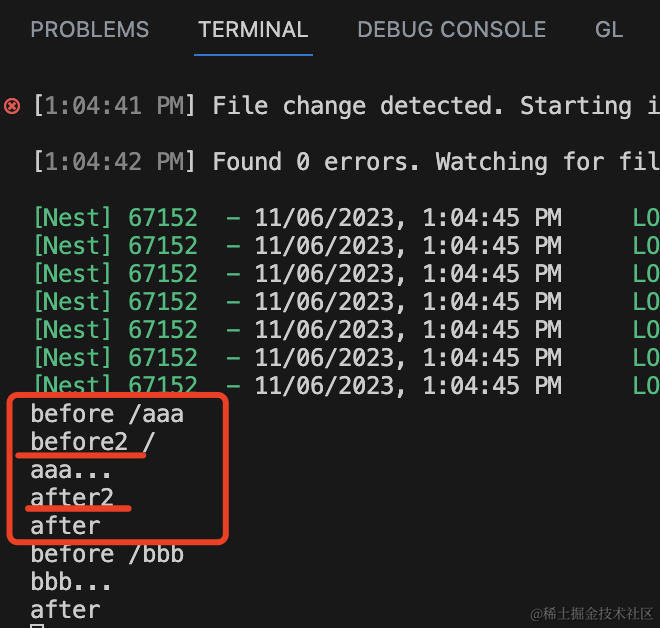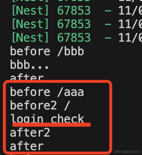 可以看到,中间件逻辑都执行了: