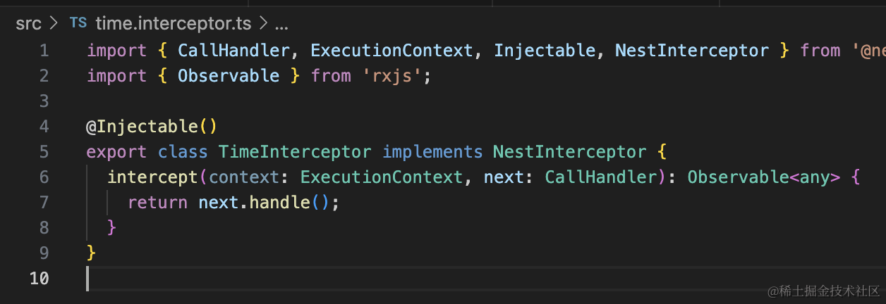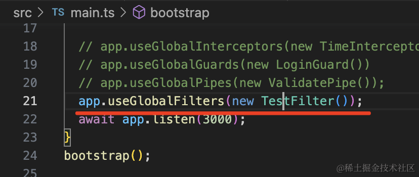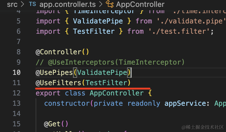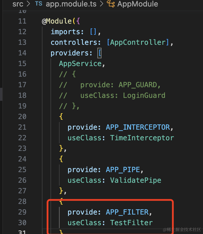 nest g filter test --no-spec --flat生成的代码是这样的: