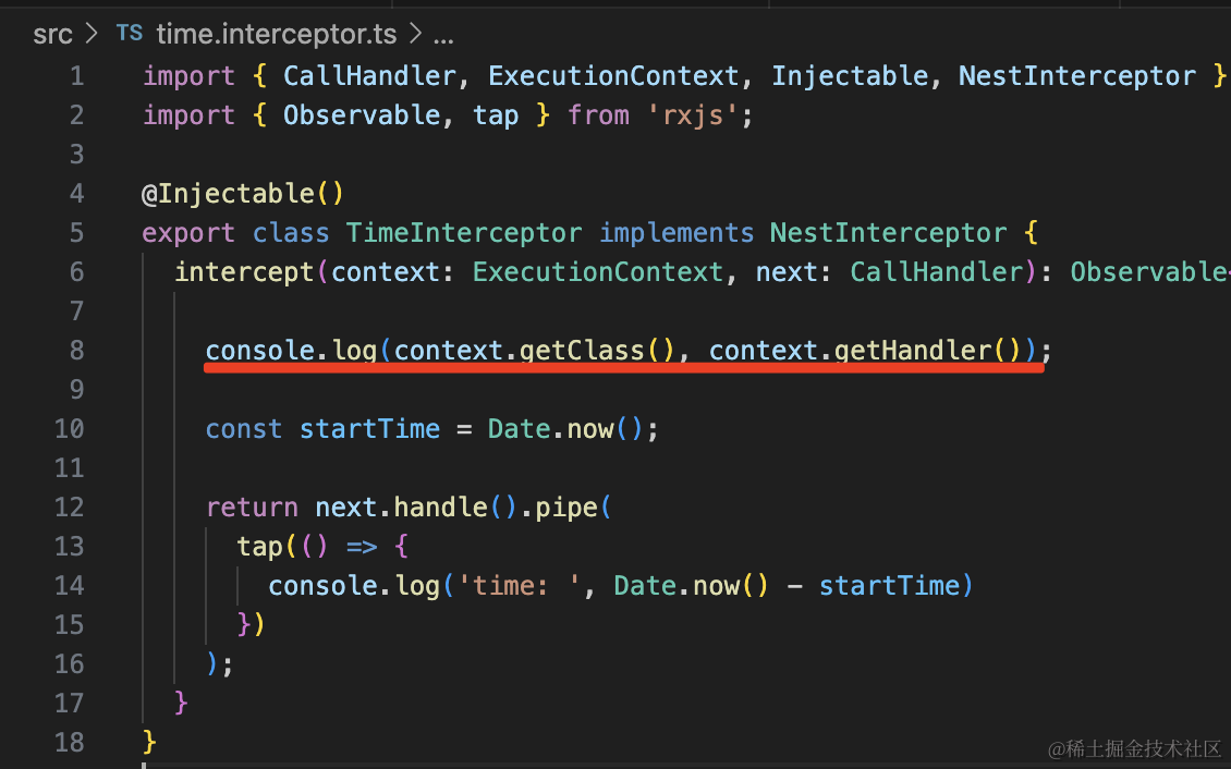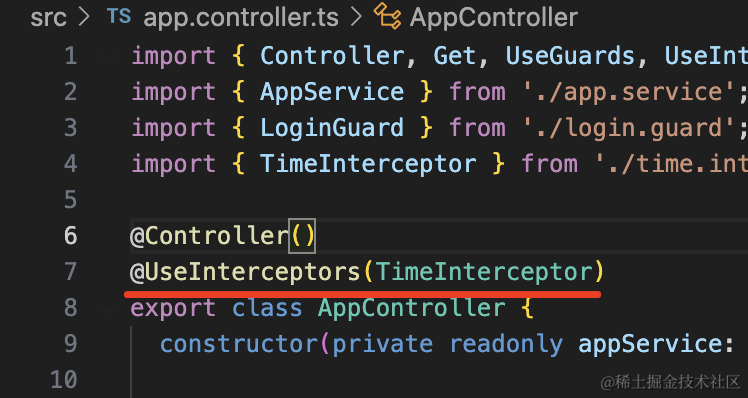 Middleware、Guard、Pipe、Interceptor、ExceptionFilter 都可以透明的添加某种处理逻辑到某个路由或者全部路由,这就是 AOP 的好处。