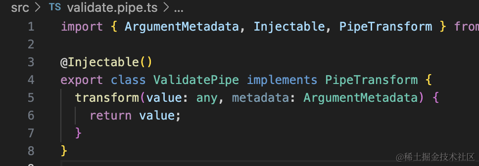 nest g pipe validate --no-spec --flat生成的代码是这样的: