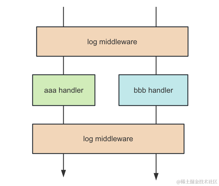 也就是说,可以在多个 handler 之间复用中间件的逻辑:
