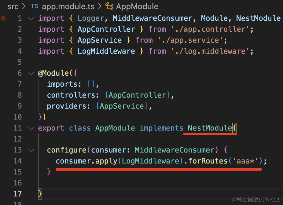 consumer.apply(LogMiddleware).forRoutes('aaa*');