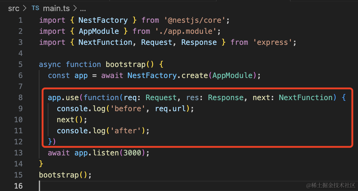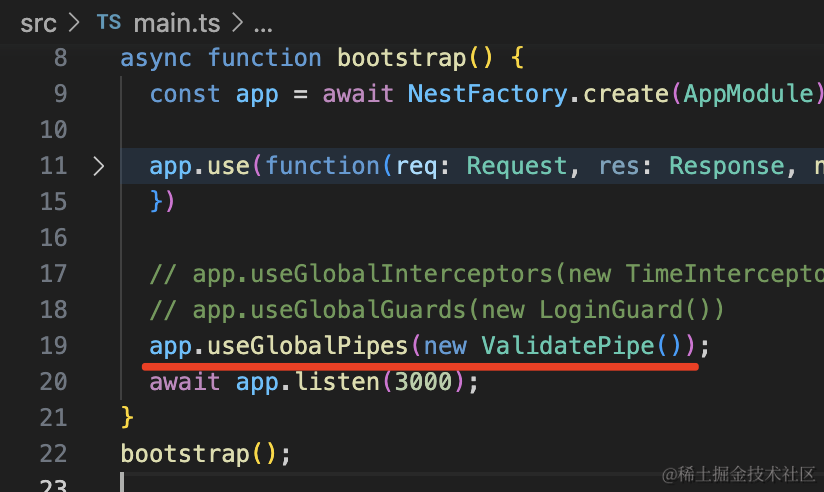 在 main.ts 里通过 app.use 使用: