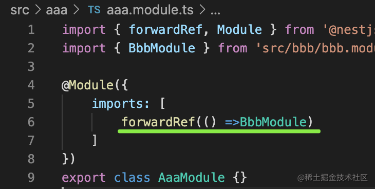 它的原理就是 nest 会先创建 Module、Provider,之后再把引用转发到对方,也就是 forward ref。