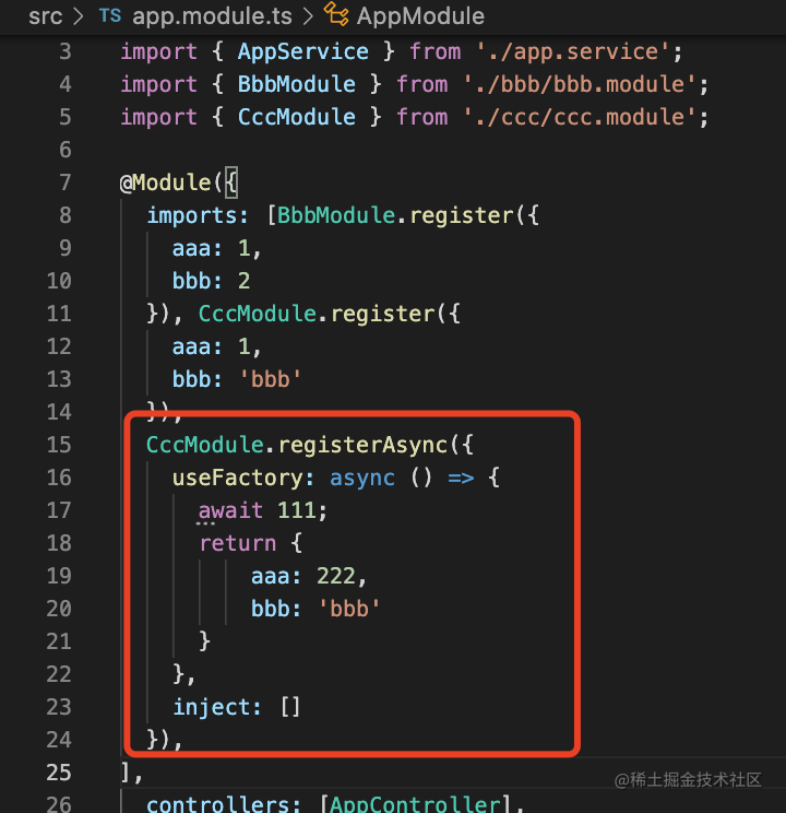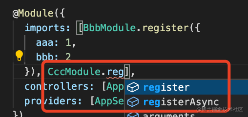 这样这个 CccModule 就已经有了 register 和 registerAsync 方法了: