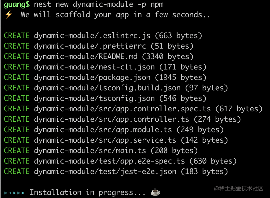 nest new dynamic-module -p npm执行
