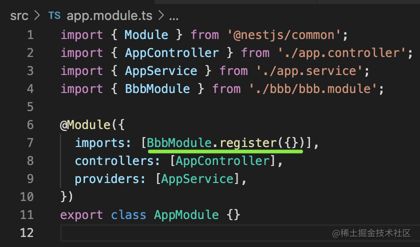 }我们给 BbbModule 加一个 register 的静态方法,返回模块定义的对象。