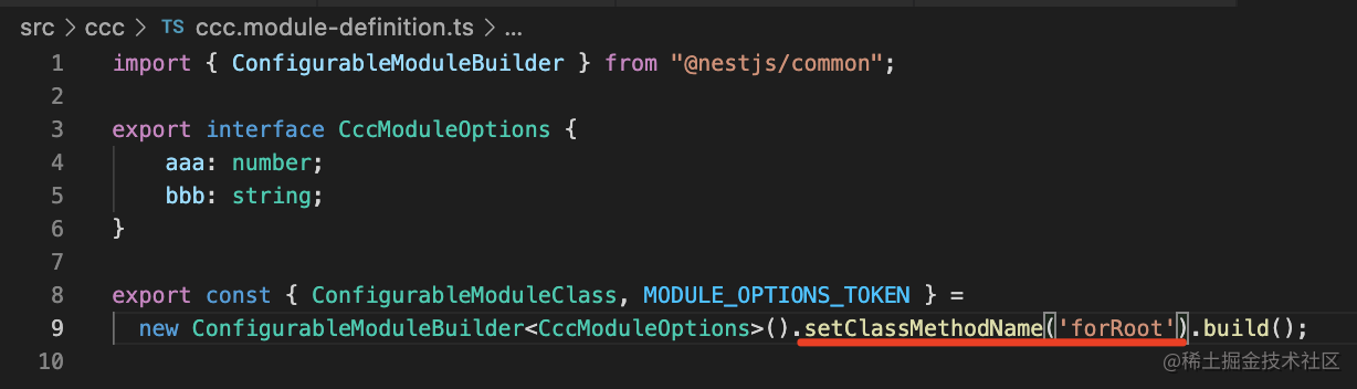 new ConfigurableModuleBuilder<CccModuleOptions>().setClassMethodName('register').setExtras({