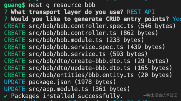 nest g resource bbb创建一个实现了 CRUD 的模块: