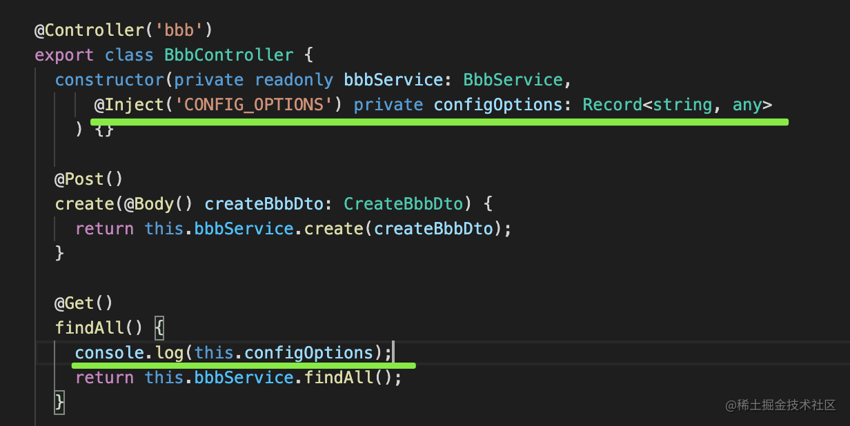 我在 BbbController 里面通过 token 注入这个 provider,打印下它的值。