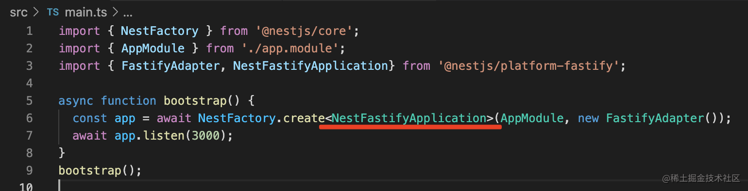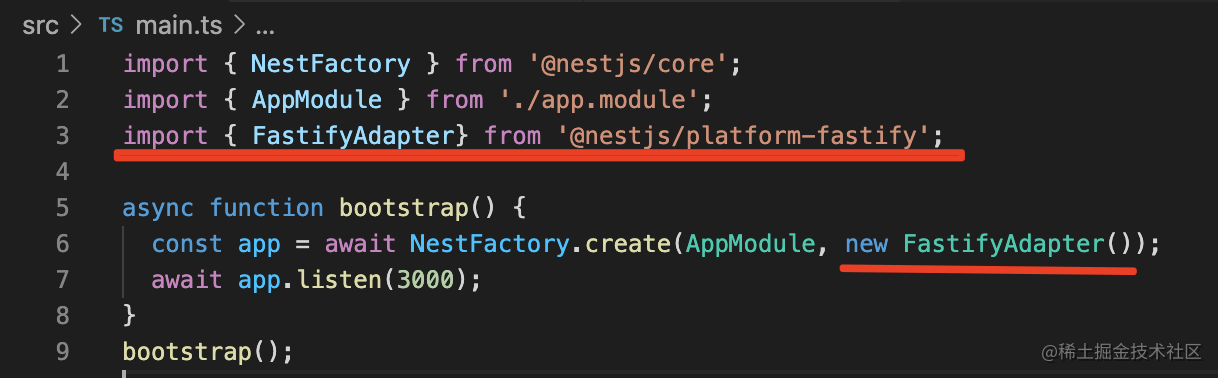 这个 FastifyAdapter 前面讲过,传入这个 adapter 之后,就切换到了 fastify 平台。