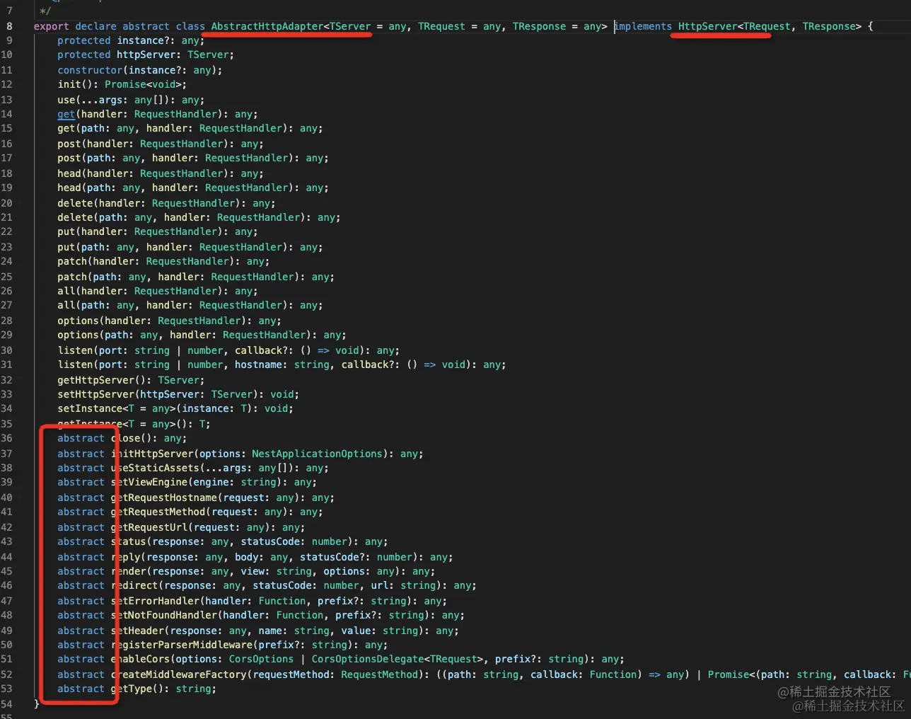 但是 Nest 也没有和 Express 强耦合,它做了一层抽象: