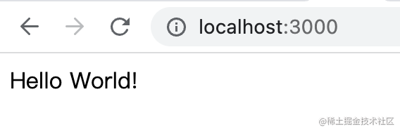 浏览器访问 http://localhost:3000 看到 hello world 就是服务跑成功了: