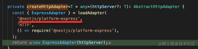 Adapter 是适配器的意思,也就是说 Nest 内部并没有直接依赖任何一个 http 处理的库,只是依赖了抽象的接口,想用什么库需要实现这些接口的适配器。