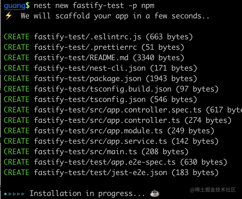 nest new fastify-test -p npm