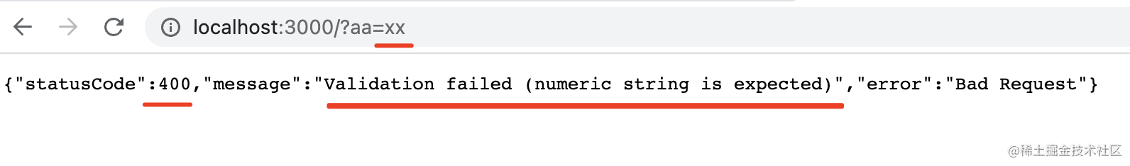 当你传入的参数不能 parse 为 int 时,会返回这样的响应: