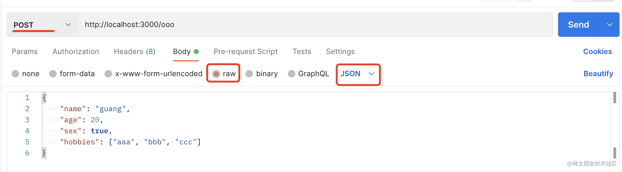 我们用 postman 来发个 post 请求。