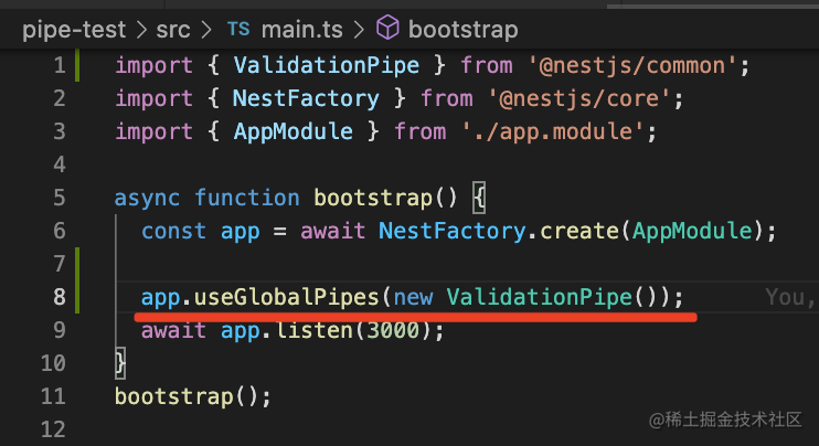 ValidationPipe 是非常常用的 pipe,后面会大量用到。