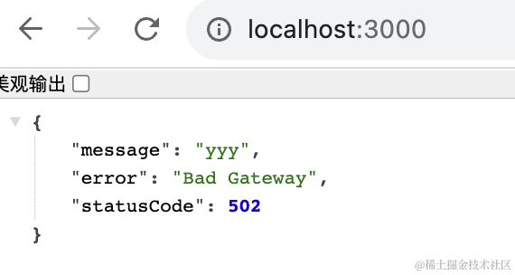 比如我抛一个 BadGatewayException。