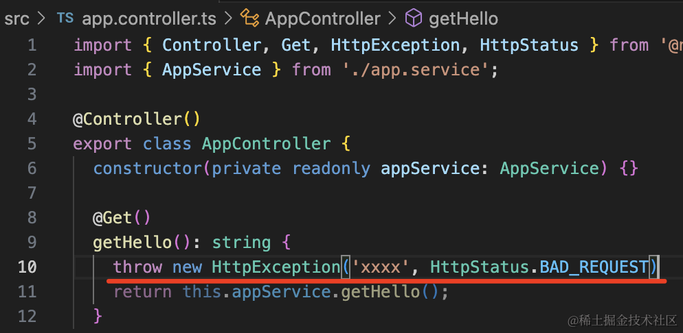 throw new HttpException('xxxx', HttpStatus.BAD_REQUEST)这个 HttpStatus 就是一些状态码的常量: