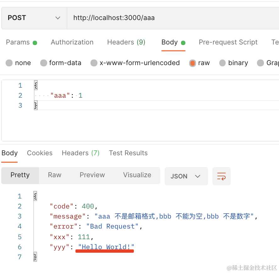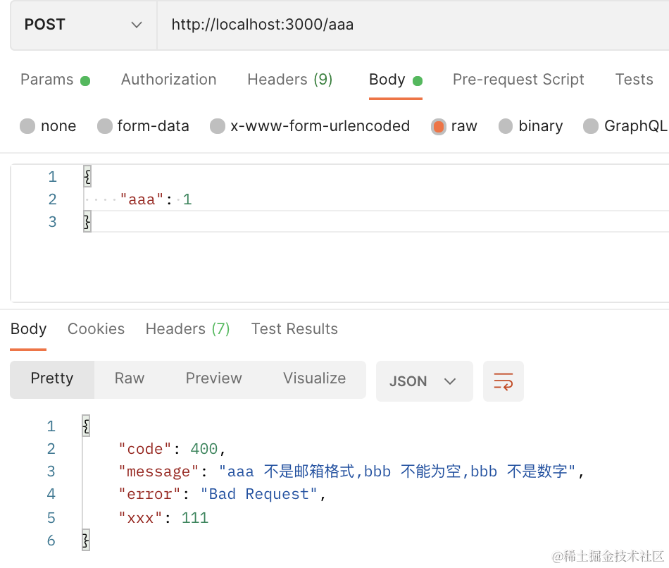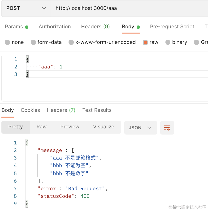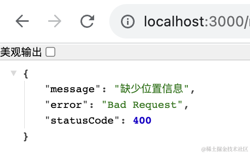 现在,ValidationPipe 的错误和其他的错误就都返回了正确的格式。