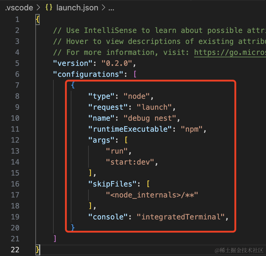 输入调试配置: