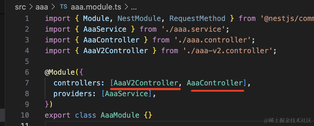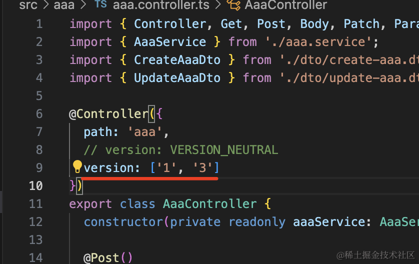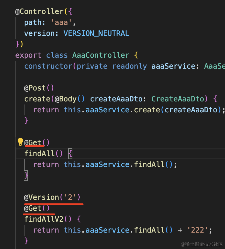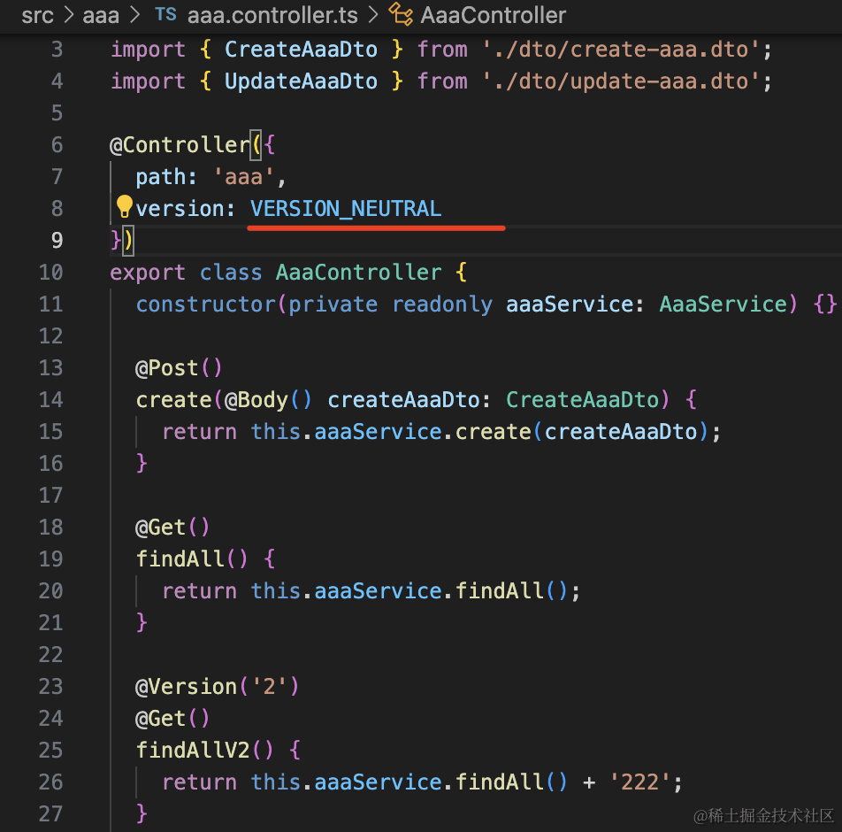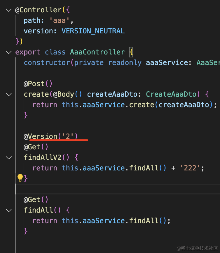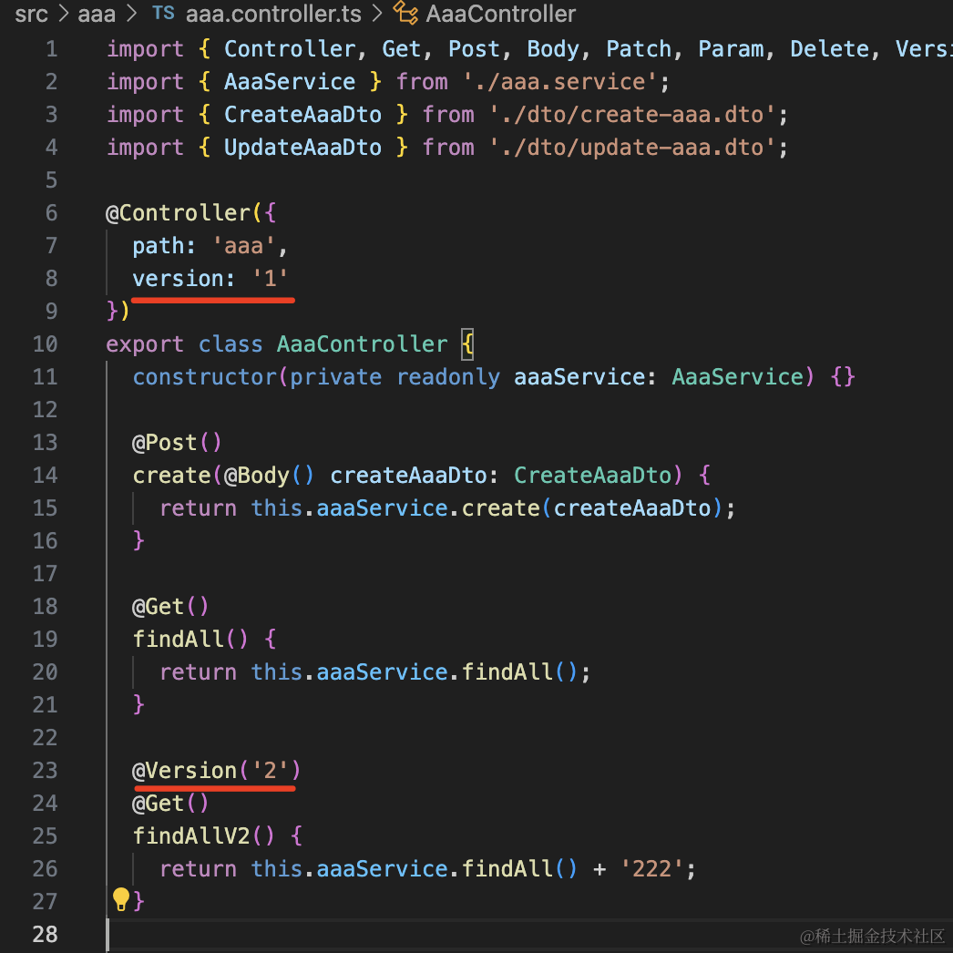 nest g controller aaa/aaa-v2 --no-spec --flat把 AaaController 里 version 2 的接口删掉,移到这里来: