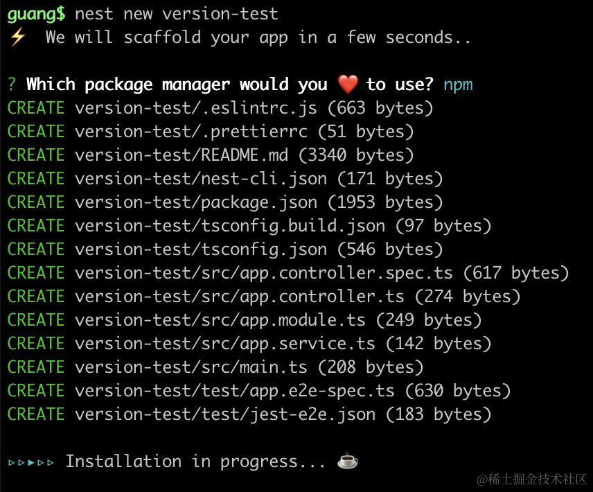 nest new version-test创建个 nest 项目。