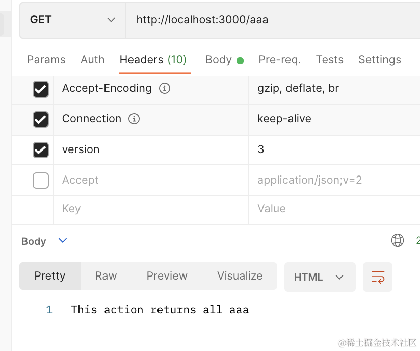 Nest 内置了这个功能,同一个路由,指定不同版本号就可以调用不同的接口。