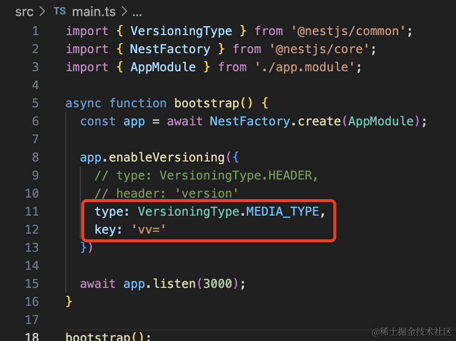 只要在 main.ts 里调用 enableVersioning 即可。
