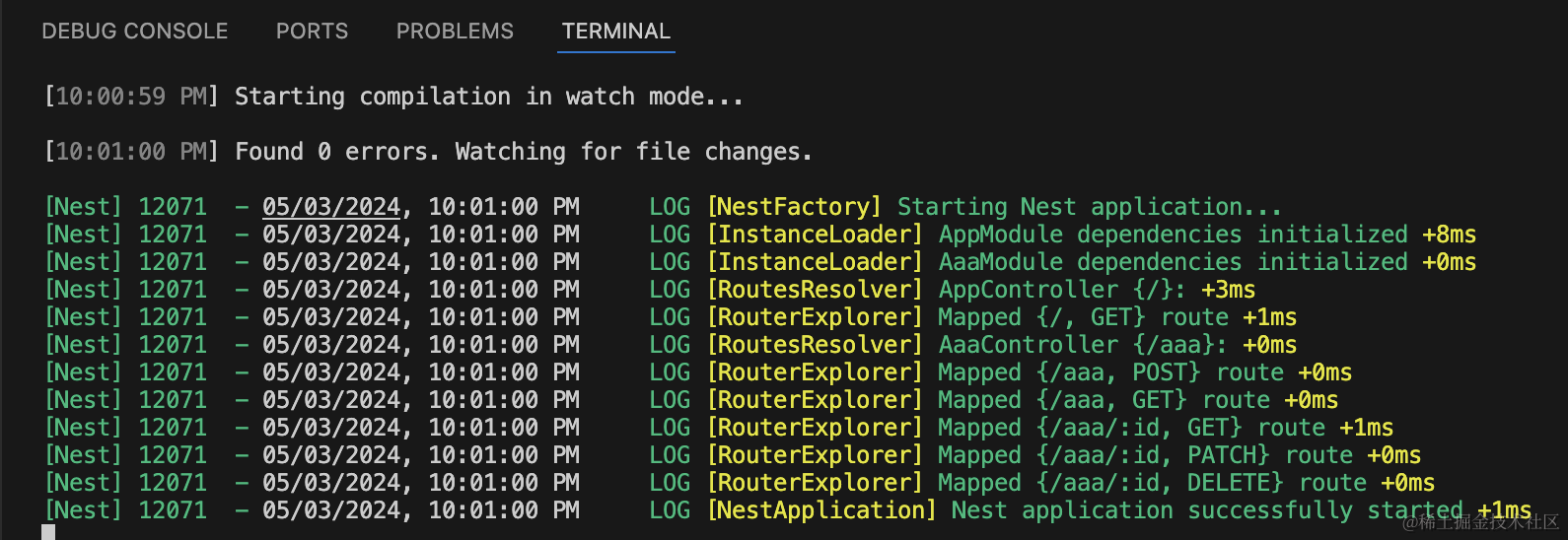 nest g resource aaa --no-spec把服务跑起来: