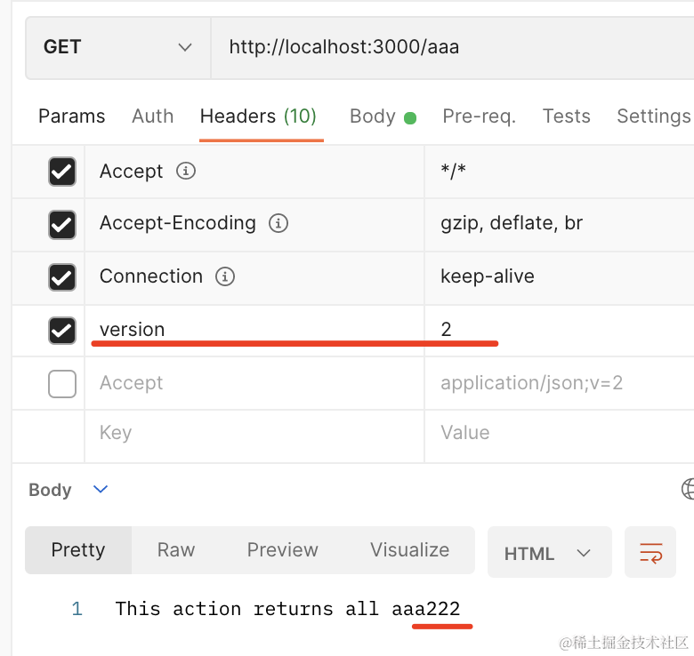 带上 version:2 的 header,访问的就是版本 2 的接口。