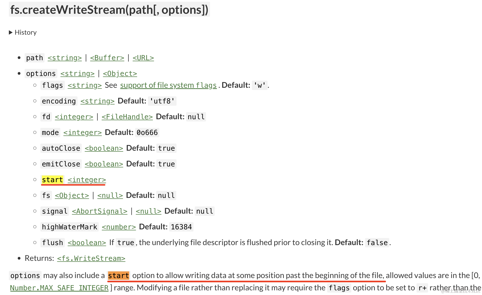 fs 的 createWriteStream 方法支持指定 start,也就是从什么位置开始写入。