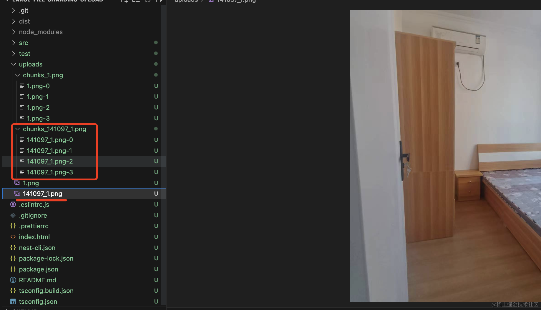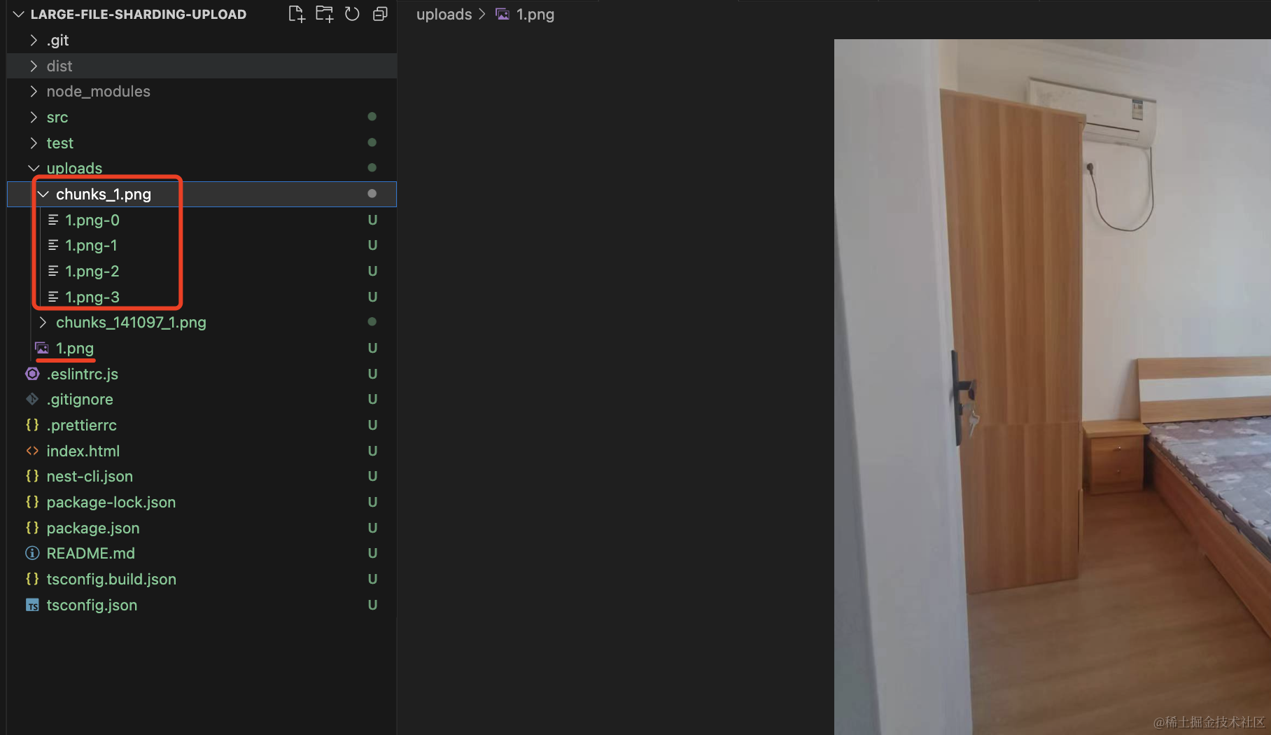 在 uploads 下创建 chunks_文件名 的目录,把文件复制过去,然后删掉原始文件。